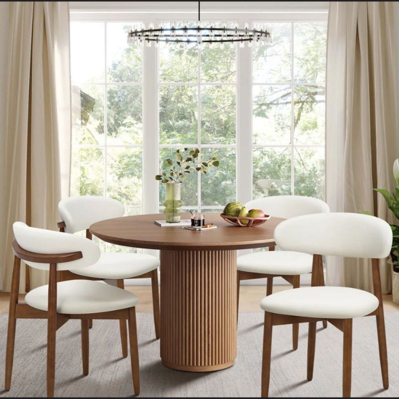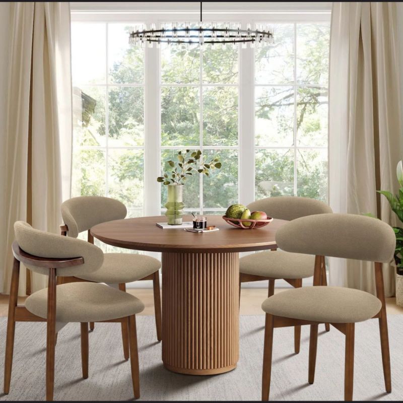 Ces chaises d’appoint incarnent un design organique où la noblesse du bois massif rencontre le confort d'un rembourrage généreux. Leur silhouette est à la fois robuste et élégante, pensée pour s'intégrer de manière modulable dans divers contextes : parfaites autour d'une table à manger pour de longs dîners, ou utilisées individuellement comme chaises de bureau ou d'appoint dans une chambre. Leur style intemporel assure une harmonie parfaite avec des intérieurs modernes ou plus classiques.