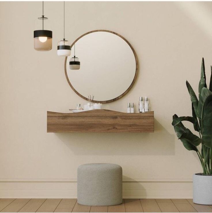 Composants : Barre de penderie robuste + 1 tiroir à poignée profilée + Miroir rond.