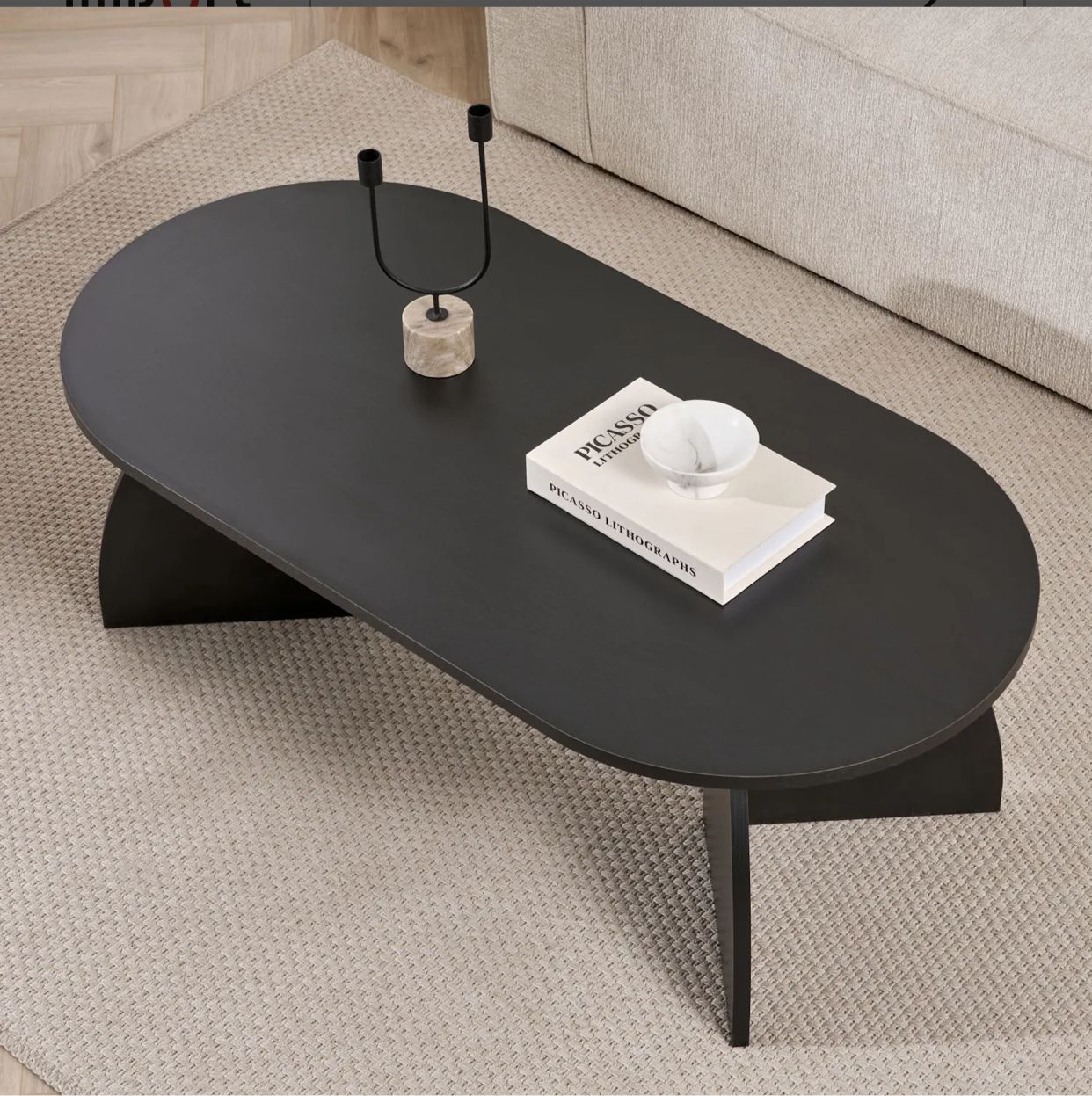 Table basse ovale - pieds courbes (Noir / Chêne / Noyer)